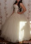 Вашему вниманию предлагается свадебное платье с эффектом моделирования фигуры. Очень красивое и стильное платье, имеет легкий оттенок шампанского. Корсет платья украшен изящной вышивкой и мелкими стразами, что создает эффект легкого мерцания. Очень пышное платье – 7 слоев тюли, но это не означает что оно тяжелое. Платье в отличном состоянии (после химчистки) и ждет свою хозяйку.