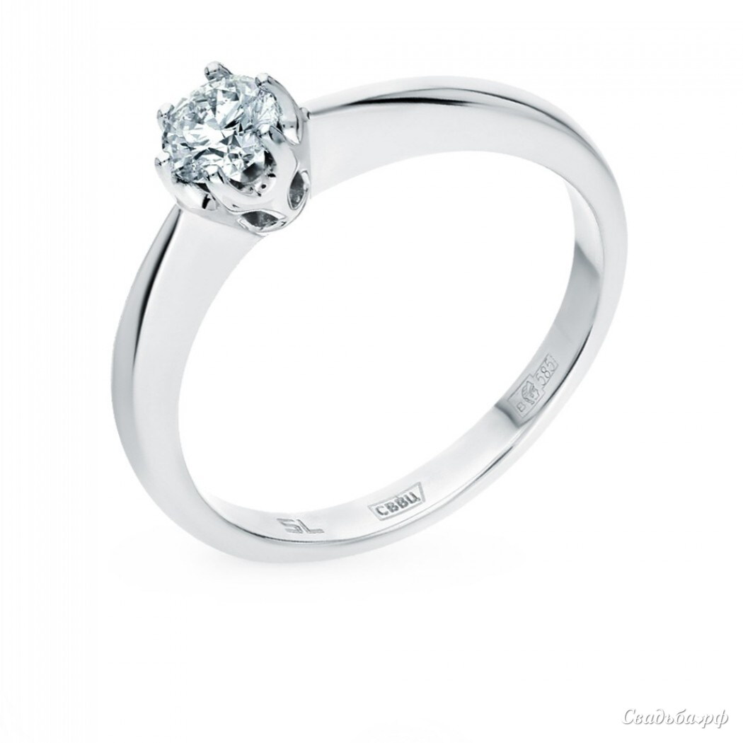 Кольцо с 1 бриллиантом, 0.28 карат; Белое золото 585 пробы. Минимальный вес изделия: 2,39 г